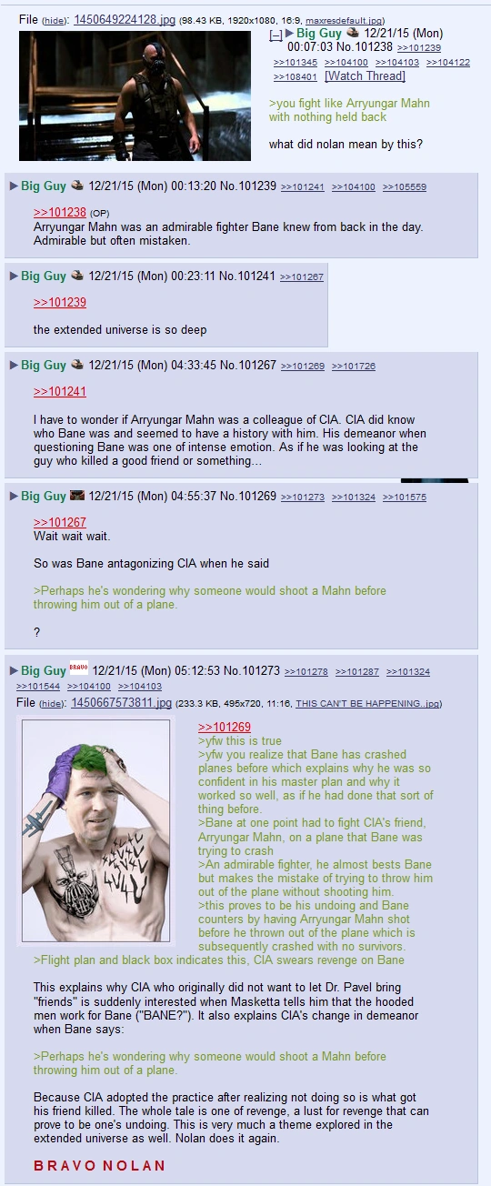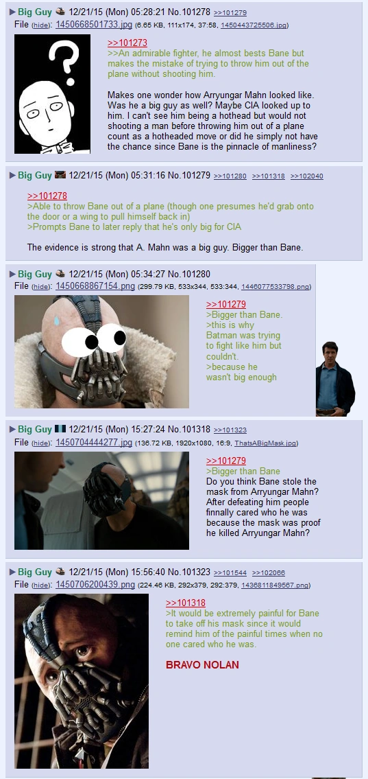 This leads to CIA swearing revenge upon the man who killed his friend, and to Bane remembering A. Mahn as a worthy adversary. This story may also reveal the origin of Bane's Mask: apparently the device belonged to Arryungar, and Bane claimed it for himself in order to make people care about him as the one who was able to defeat the admirable A. Mahn.